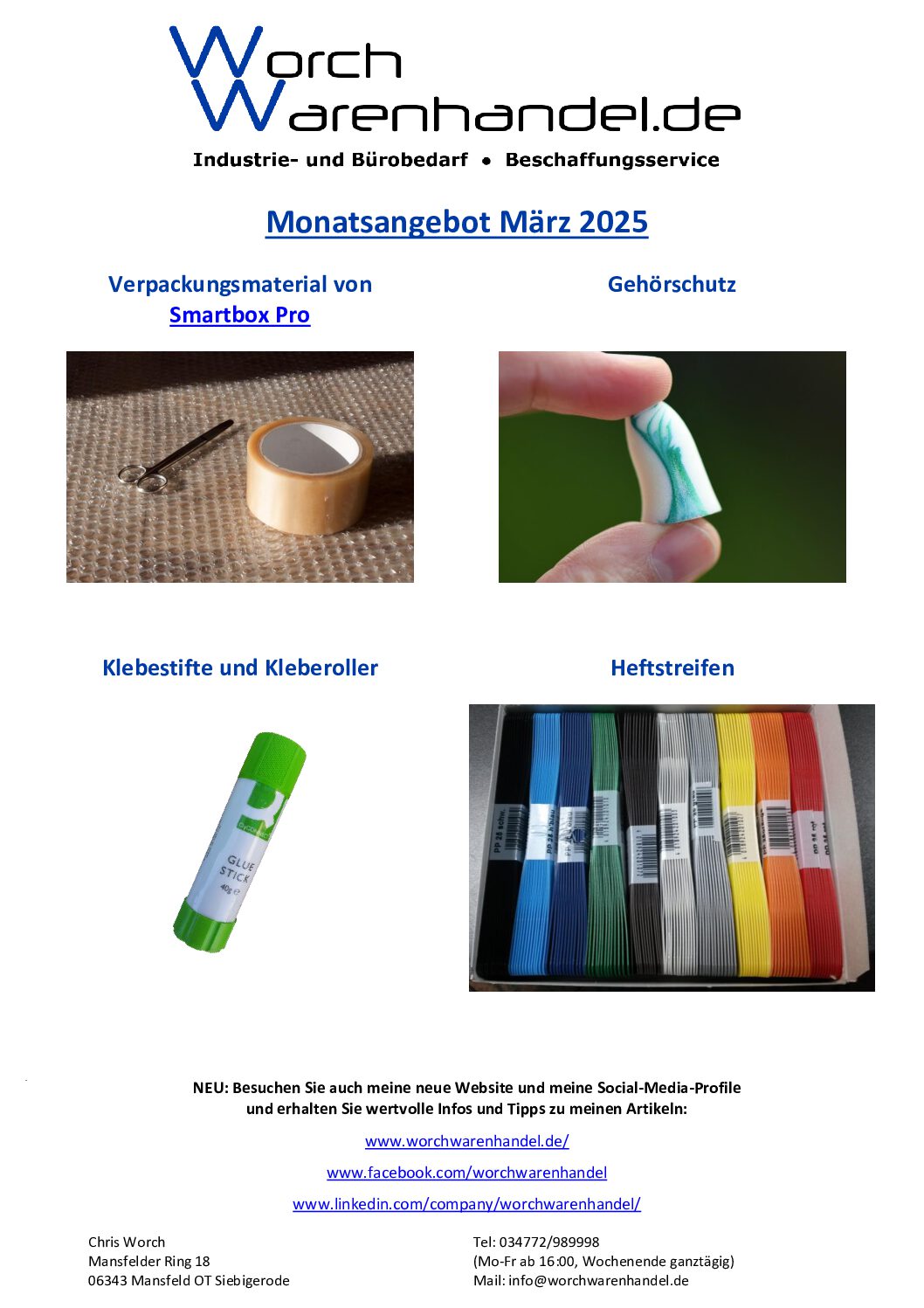 – Verpackungsmaterial der Firma Smartbox Pro – Gehörschutz – Klebestifte und Kleberoller – Heftstreifen